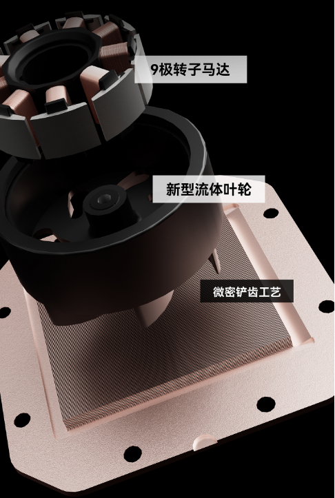 Hệ thống bơm nước thế hệ mới với động cơ roto 9 cực mạnh mẽ với chỉ số RPM lên tới 3100, cánh quạt đẩy chất lỏng thế hệ mới, công nghệ mặt rãnh mật độ vi mô đảm bảo luồng tản nhiệt dồi dào và được chạy xuyên suốt trong quá trình hoạt động. Mặt tiếp xúc với CPU được làm bằng đồng nguyên khối, vừa đảm bảo về hiệu quả tản nhiệt vừa mang lại độ bền bỉ trong quá trình sử dụng. Hiệu suất hấp thụ nhiệt tăng 23%, hiệu suất trao đổi nhiệt tăng 17%, tiếng ồn vận hành giảm 33%