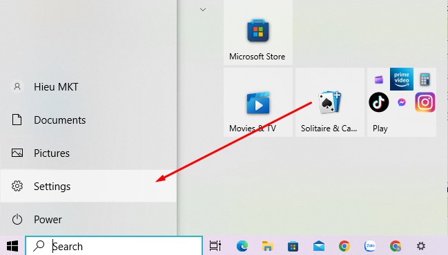 Bước 1 : Click chuột trái vào biểu tượng Windows ở góc trái màn hình > chọn Settings