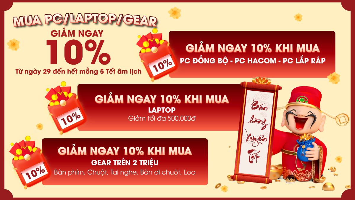 - Giảm ngay 10% khi mua GEAR trên 2 triệu đồng (Bàn phím, Chuột, Tai nghe, Bàn di chuột, Loa)