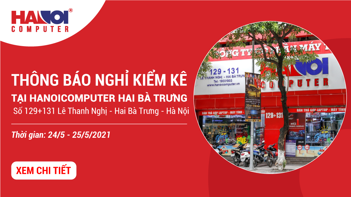 Nhằm phục vụ tốt hơn nhu cầu mua sắm hàng hóa trước khi bắt đầu mùa hè 2021, HACOM HAI BÀ TRƯNG (Địa chỉ: 129 + 131 Lê Thanh Nghị, Hai Bà Trưng, Hà Nội) xin phép Quý khách được tạm ngưng phục vụ từ ngày 24/5/2021 đến 25/5/2021, nhằm thuận tiện cho việc sắp xếp, phân loại và kiểm kê hàng hóa của showroom HACOM HAI BÀ TRƯNG.