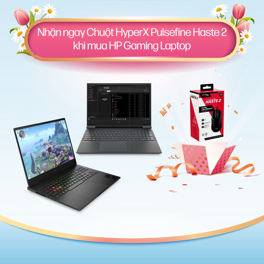 - Tặng ngay Chuột HyperX Pulsefire Haste 2 khi mua HP Gaming Laptop