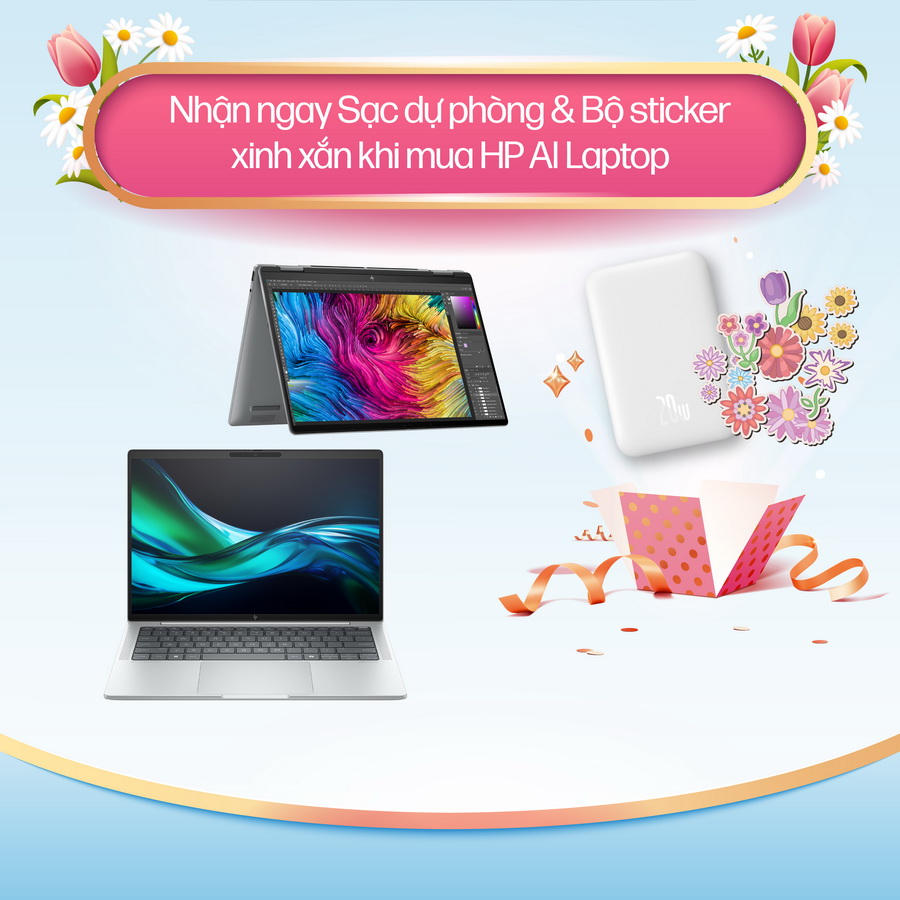 - Nhận ngay Sạc dự phòng & bộ sticker xinh xắn khi mua HP AI Laptop