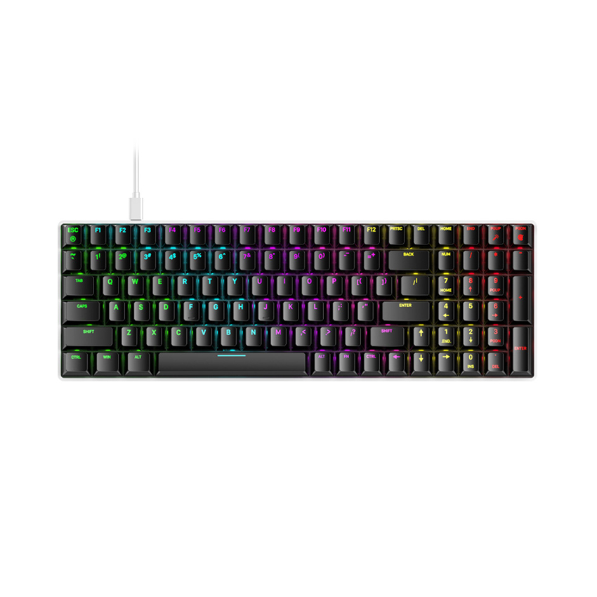 Bàn Phím Cơ Dare-U EK8100 có thiết kế với layout 100 phím tinh tế cùng các chức năng, phím số. Ngoài ra bàn phím cơ cũng được trang bị dải led RGB nổi bật.