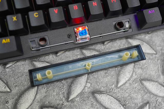 Keycap của EK313 được làm bằng nhựa ABS với công nghệ doubleshot rất bền, xuyên LED tốt. Các phím dài sử dụng stab đặc trưng của dòng phím giá rẻ (không sử dụng stab kiểu cherry hay costa) và không cho phép thay được keycap các nút này. Đây cũng là hạn chế của E-DRA EK313, đó là sẽ không cho phép người dùng có thể thay được 100% keycap.