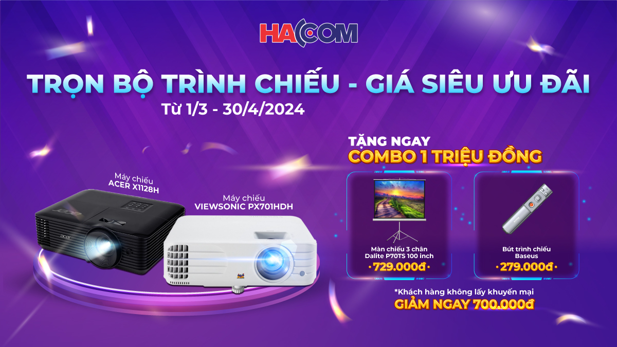 Nội dung: Từ 01/03/2024 - 30/04/2024, khi mua một trong 2 sản phẩm máy chiếu dưới đây: