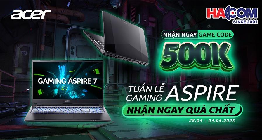 ƯU ĐÃI TUẦN LỄ ACER GAMING ASPIRE 2025 - NHẬN NGAY QUÀ CHẤT: MUA LAPTOP GAMING ASPIRE 7 & GAMING ASPIRE 5 NHẬN THẺ NẠP GAME 500.000 VNĐ