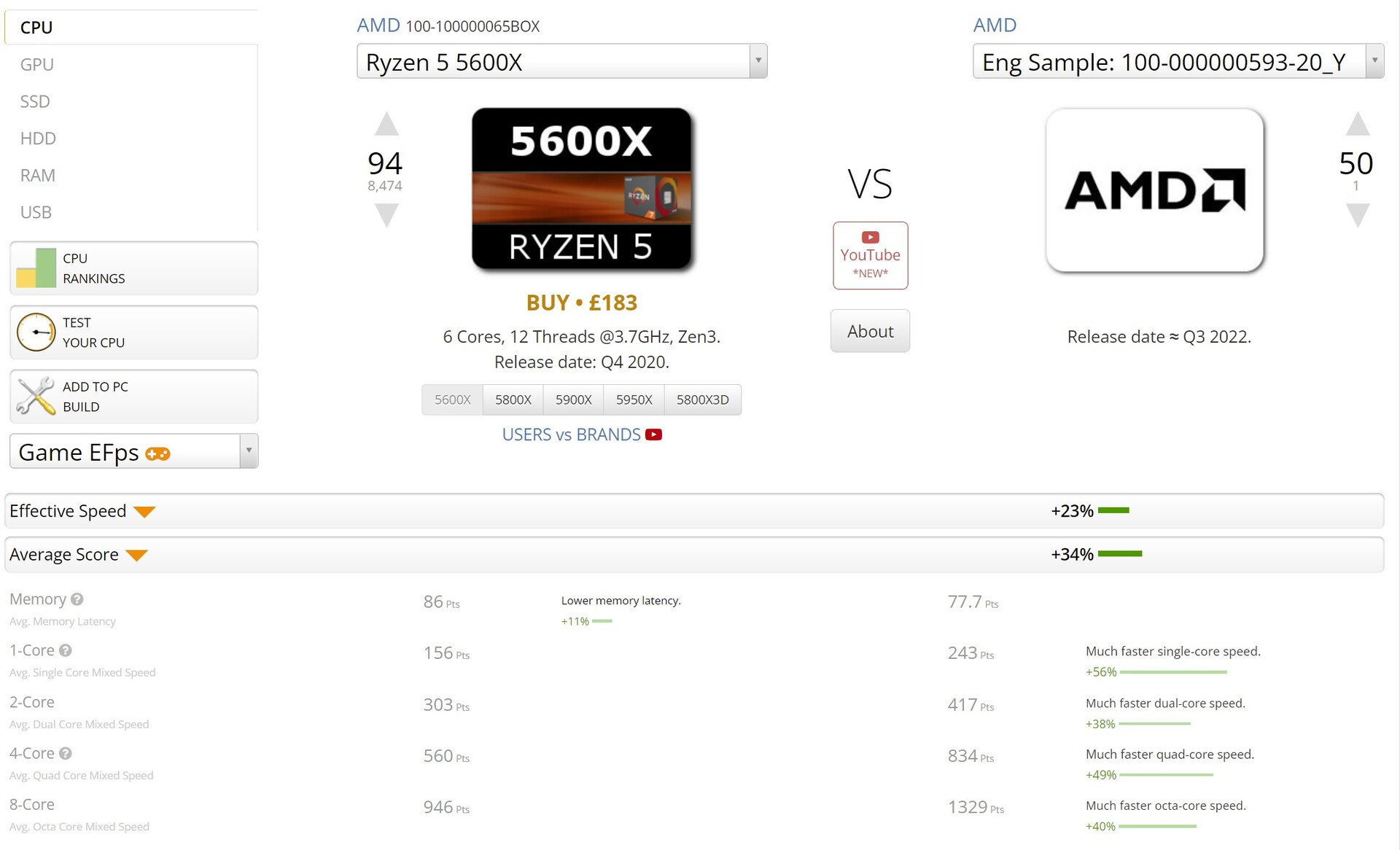Con chip này có mã thử nghiệm là 100-000000593-20_Y, mã mà tất cả mọi người đều cho rằng đó chính là con chip R5-7600X trước đó. Con chip này được gắn trên mainboard ASRock N7-B65XT, đạt số điểm 246 ở bình thường, 1082 ở chế độ làm việc tác vụ nặng, và 1478 ở chế độ làm việc server. Điều này giúp cho nó có mức điểm 117%, và chỉ đứng dưới con chip Core i9-12900KS ở số điểm 118%. Tuy vậy, điều này cũng chứng tỏ một sự trở lại cực kì mạnh mẽ của AMD ở mảng PC, sau khi không ra mắt dòng AMD Ryzen 6000 cho PC.