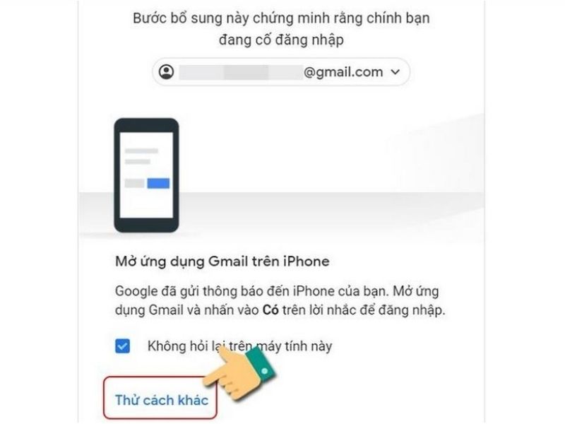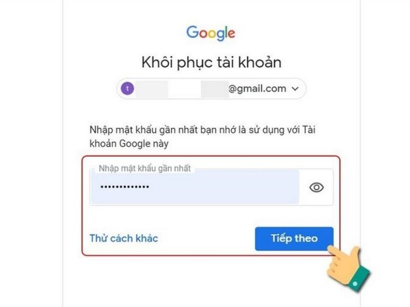 Google sẽ cố gắng xác minh rằng đó thực sự là tài khoản của bạn bằng cách yêu cầu xác minh qua các phương thức khác mà bạn đã thiết lập trước đó. Các phương thức này có thể bao gồm: số điện thoại, địa chỉ email khôi phục.