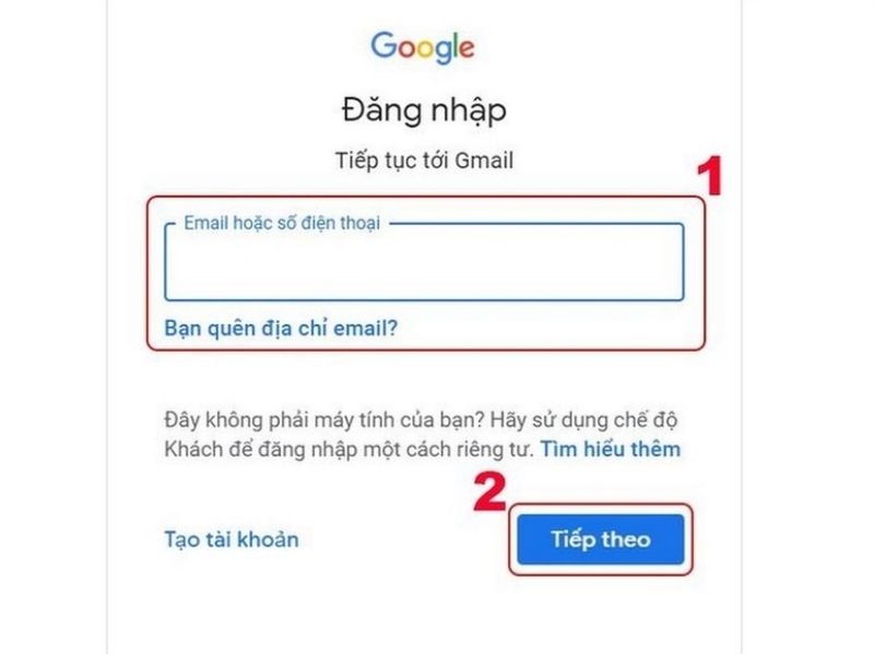 Mở trình duyệt và vào trang đăng nhập Google, nhập email (hoặc số điện thoại) và mật khẩu của bạn như bình thường.