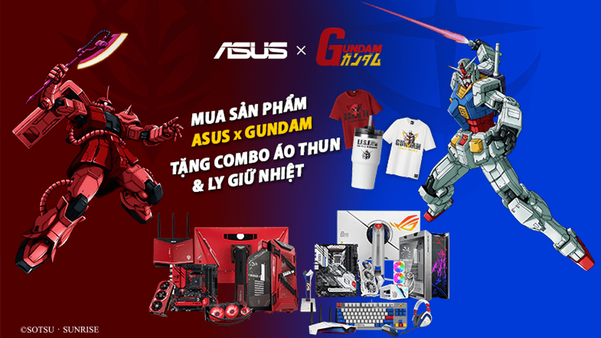 - Tặng combo 2 áo thun ASUS x Gundam trị giá 2.000.000đ cho khách hàng mua 1 trong 2 set sản phẩm ASUS x Gundam sau: