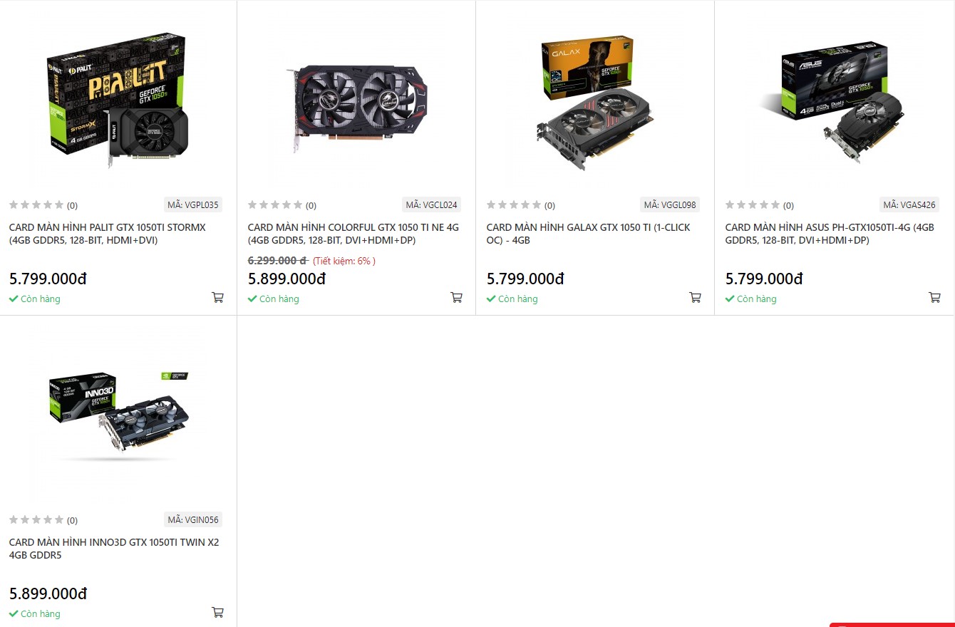 Có một điểm rất đáng lưu ý, là ngoài GTX 1650 và 1050Ti, các mẫu GPU chơi game của Nvidia trong khoảng giá từ 5 triệu đồng đổ xuống gần như ‘trắng xóa’ – một điểm rất khác so với nhiều năm về trước. Tất nhiên, người dùng nên ‘tránh xa’ các mẫu card đồ họa như GT 1030 (giá bán khoảng 2,5 triệu đồng), khi đây là mẫu GPU dùng để...xuất hình, dành riêng cho PC văn phòng hoặc HTPC, thay vì chơi game.