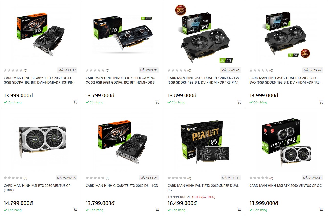 Chẳng hạn, mẫu RTX 2060 của Nvidia hiện vẫn đang được bán với với mức giá khoảng 14 triệu đồng tại HACOM.  Mức giá này cao hơn nhiều so với con số 8 triệu đồng vào năm 2020.