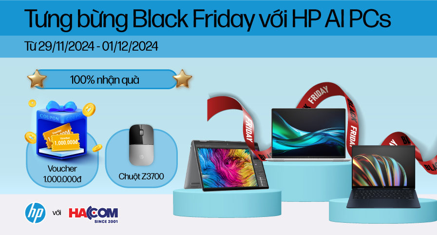 Từ 29.11 đến hết ngày 1.12.2024 áp dụng tại tất cả showroom HACOM trên toàn quốc.