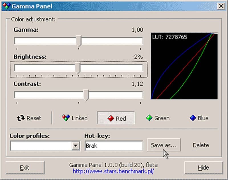 Gamma Panel là phần mềm điều chỉnh độ sáng màn hình PCđược nhiều người tin dùng. Đây sẽ là một sự lựa chọn tốt cho những người dùng muốn thay đổi nhiều ngoài độ sáng tiêu chuẩn của màn hình của họ. Bên cạnh việc điều chỉnh độ sáng, Gamma Panel cũng có thể điều chỉnh gamma và độ tương phản với khả năng bổ sung để cho phép từng màu Đỏ, xanh lục và xanh lam đều có thể điều chỉnh riêng lẻ hoặc tất cả cùng nhau.