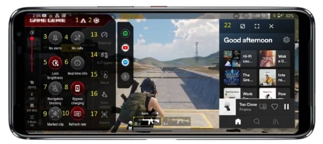 Tiếp tục với các tính năng chơi game, Asus đã giữ các bộ kích hoạt không khí siêu âm ở cạnh điện thoại, vì vậy chúng ở trên cùng khi sử dụng điện thoại theo hướng ngang. Tuy nhiên, ROG Phone 5 Pro và Ultimate cũng có thêm hai khu vực cảm ứng gần cuối điện thoại để có nhiều tùy chọn điều khiển hơn. Sản phẩm cũng mang đến nhiều tùy chọn điều khiển chuyển động hơn.