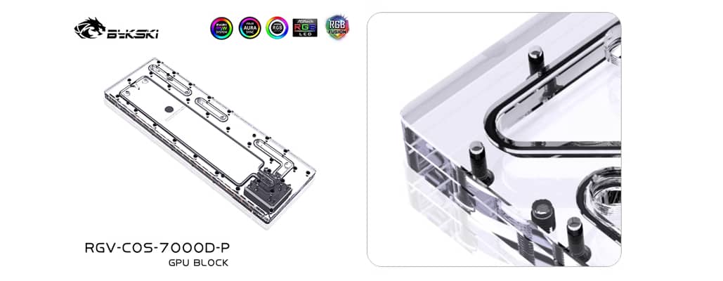 Chất liệu Acrylic trong suốt được sản xuất bởi Mitsubishi với tổng độ dày 19mm, cùng với hệ thống đèn LED rực rỡ mọi chỗ giúp các sản phẩm Bykski tạo nên vẻ đẹp không thể cưỡng lại. Hệ thống đường nước trong tấm nước được thiết kế để lan toả ánh sáng nhiều nhất, và đẹp nhất có thể.