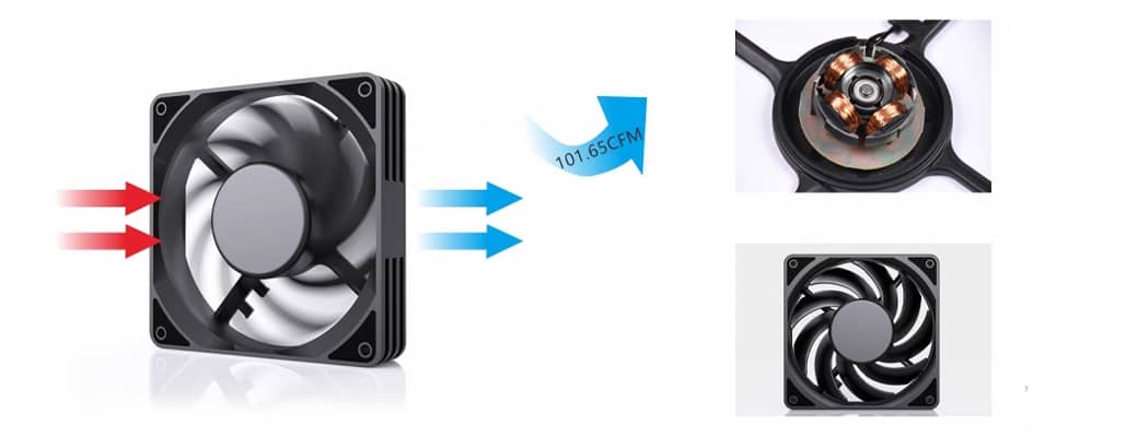 Tất cả các bộ tản nhiệt nước của Bykski đều được trang bị quạt chuyên dụng CF-AP3000EX-X. Với nhựa sử dụng là loại PBT cao cấp, cùng thiết kế chuyên dụng cho các hệ thống tản nhiệt nước với lưu lượng gió 105CFM và áp suất gió 6.27mm H2O mang lại khả năng tản nhiệt cực kì hiệu quả so với các quạt thông dụng trên thị trường