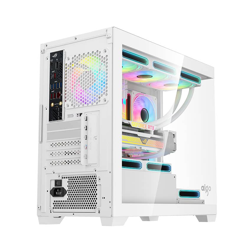 Vỏ case Aigo C218M sở hữu thiết kế tông trắng tinh khôi, kết hợp với mặt kính cường lực, cho phép bạn khoe trọn vẻ đẹp của các linh kiện bên trong. Kích thước vừa phải giúp sản phẩm dễ dàng phù hợp với nhiều không gian làm việc và giải trí khác nhau