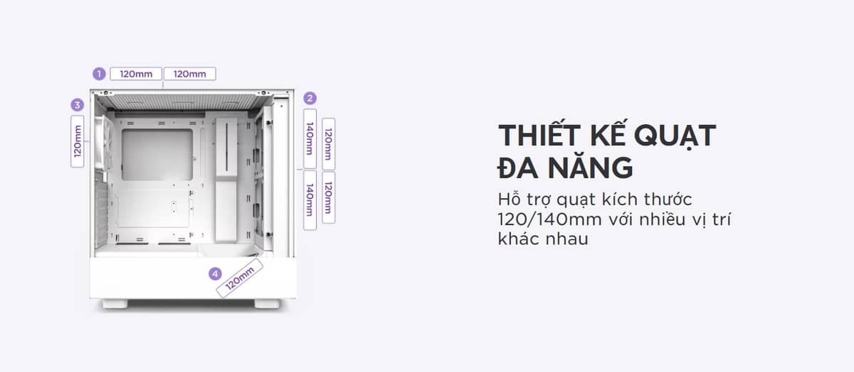 | Số quạt phía trước của case: | 2 x 120mm / 2 x 140mm |