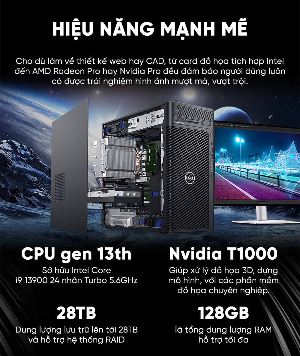 Sức mạnh phần cứng: Trang bị tùy chọn lên đến bộ xử lý Intel® Core ™ i9 hoặc dòng Xeon trứ danh, bộ nhớ RAM DDR5 xung nhịp cao lên tới 4400 MHz cho phép hoạt động nhanh, đáng tin cậy và hiệu suất cao.
